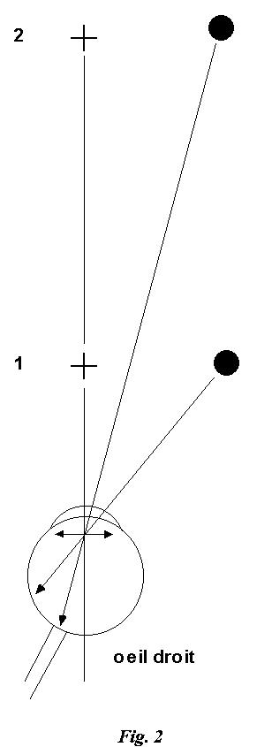 L'explication est donnée par la figure 2. Dans la position de départ (1), l'image du disque noir se forme sur une zone de la rétine pourvue de cellules sensorielles. Dans la position d'arrivée (2), l'image du disque se forme sur le point aveugle, dépourvu de cellules sensorielles, d'où la disparition apparente du disque.
